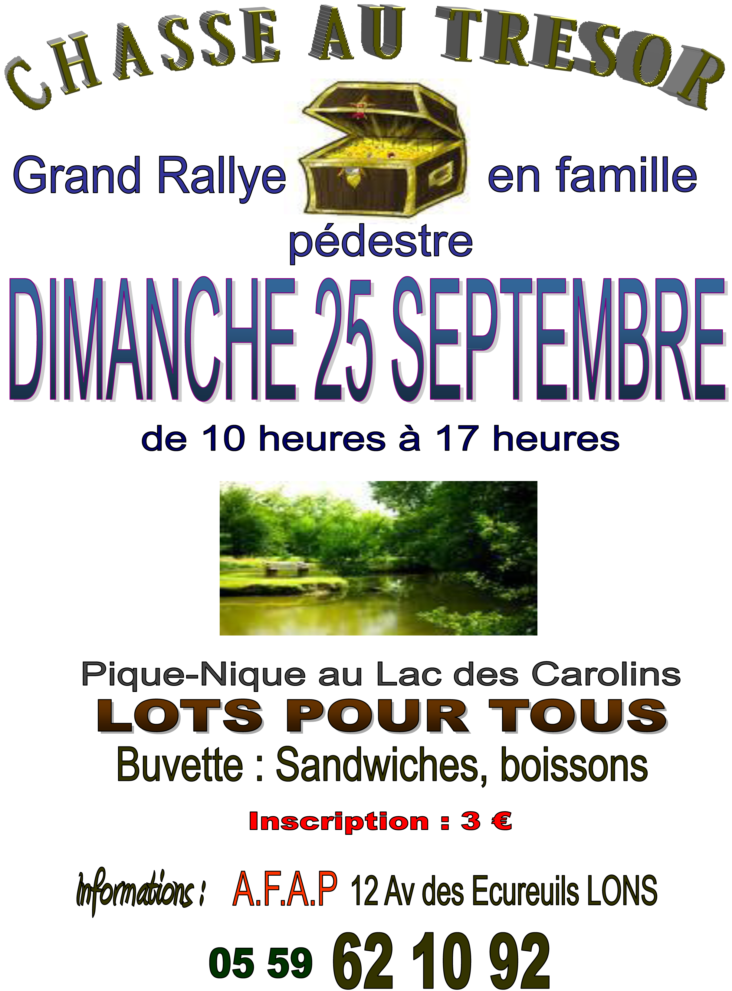 Tenez-vous prêts pour le 25 septembre 2011, date de la prochaine chasse au trésor de l’AFAP à Lescar !